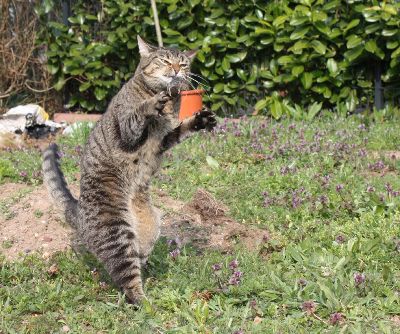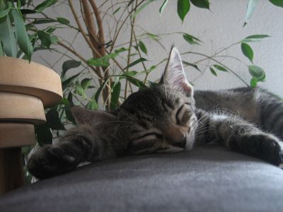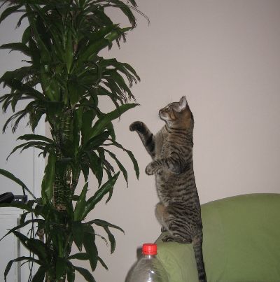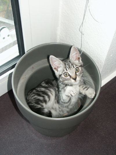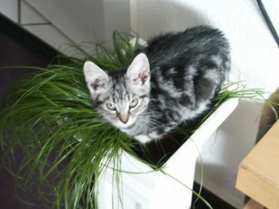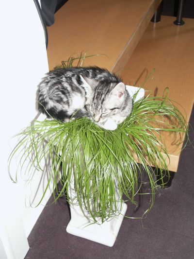 Das Katzengras - eigentlich zur Verdauung gedacht - hat nicht lange überlebt, da er sich ständig hineingelegt hat.