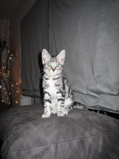 Ihre Farbe nennt sich Blue-Tabby-Point und sie kommt aus dem Hause Chaplins.