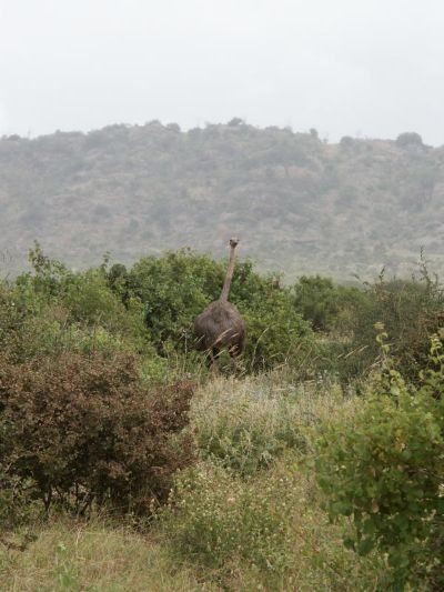 Fast nicht zu erkennen ist hier ein Strauß bei der Balz.