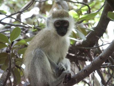 Dieses Meerkatzenäffchen war dagegen handzahmer und wollte von uns gefüttert werden.