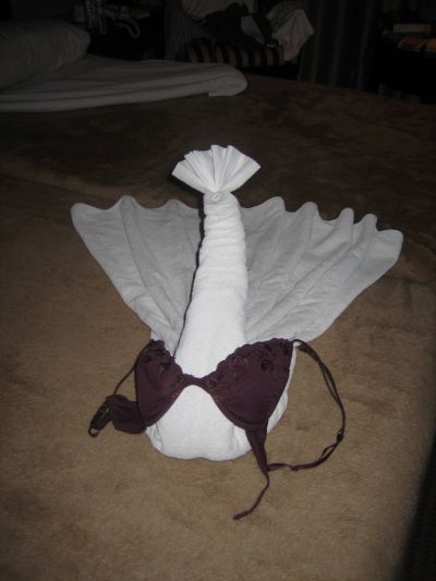 Jeden Abend wurden wir mit neuen Handtuchfiguren überrascht. Dabei wurde auch mehr und mehr unser herumliegendes Hab und Gut eingebaut.