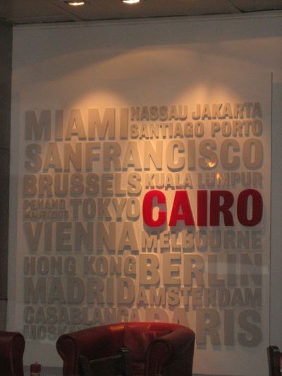 Einmal umsteigen in Kairo. Leider war da nichts mit shopping während der Wartezeit von 2 Stunden. Wir saßen im Nebentrackt und waren schon froh, dass es eine Kaffebar gab.