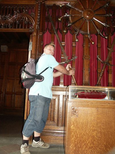 Am letzten Abend machten wir eine "Terror-Tour" durch die nächtlichen Gassen und Hinterhöfe. Der größte Terror hierbei war das Bezahlen. Wir waren wirklich enttäuscht. Der Tourleiter führte uns durch windys and closes und erzählte dabei ein wenig was über das Leben im Mittelalter und die Hexenverbrennungen. Alles schön und gut. Dann führte er uns in einen Raum mit ein paar Folterinstrumenten. Der Raum war wirkliche Folter, denn es waren durch die Scheinwerfer ca. 45 Grad darin. Dann zeigte er uns die erst kürzlich entdeckten uralten Gänge, die sich im Untergrund durch die ganze Stadt ziehen... Wir sind immernoch der Meinung, dass wir in dem Weinkeller von irgendjemandem standen. Aber als Touri macht man sowas ja gerne mit, denn auch hier verliert man das eine oder andere Pfündchen.
